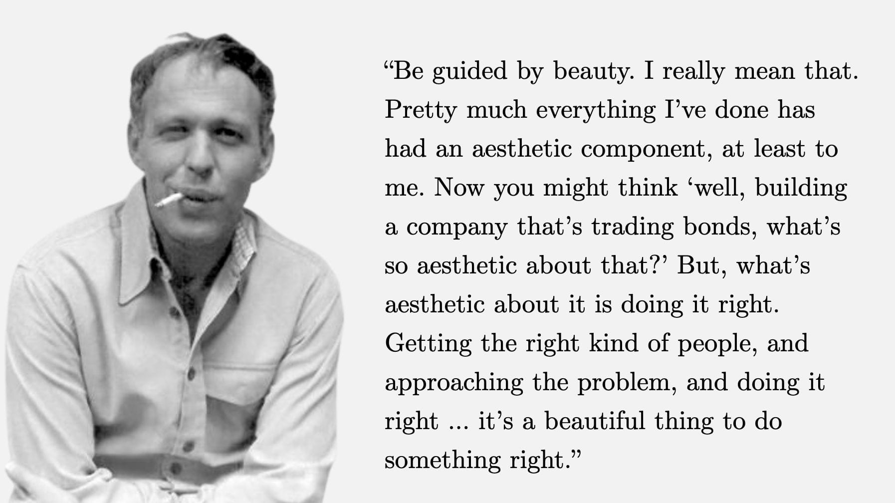 你可能会想,“建立一个债券交易公司,这有什么美感可言?” 但是,它的美在于把事情做对。