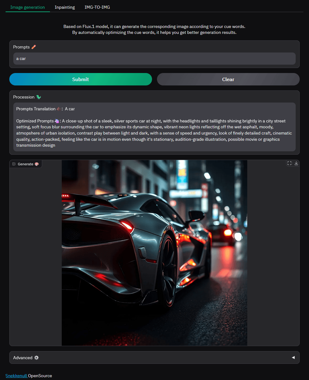 因此写了一个WebUI,方便本地部署。支持提示词翻译、提示词自优化的flux.1 Schenell文生图,SDXL重绘,以及SDXL图生图,基本上囊括了CF的生图场景。